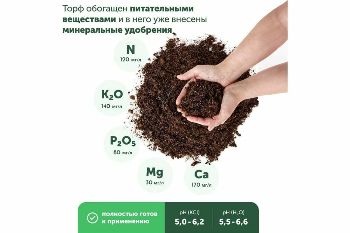 Показатель кислотности pH 5,5-6,6 Субстрат на основе верхового торфа, незаменимая земля для сада, дачи, дома, огорода и в домашних условиях. Назначение: Садовый грунт для растений универсальный подходит для выращивания рассады, овощных культур, саженцев деревьев, плодово-ягодных культур, кустов, посадки семян, газонных цветов и комнатных растений. Почвогрунт обеспечивает универсальное, комплексное питание растений, стимулируя их общий рост и корнеобразование.